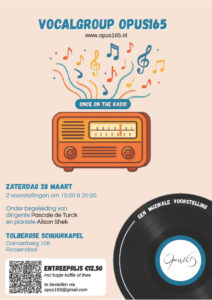 “Once on the Radio” is de titel van ons optreden dat we op zaterdag 28 maart maar liefst 2 keer (15.00 uur en 20.00 uur) zullen uitvoeren in de knusse “Tolbergse schuurkapel” aan de Damastberg 108 in Roosendaal.